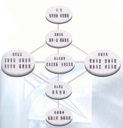 以文化创新为基础,以管理创新为保障,以机制创新为动力,以知识创新为手段,创建国内一流,国际知名的科研机构。