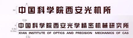 西安光机所的中文标准字是以新艺体为基础设计而成,字体平整方正,饱满匀称、结构整然,以表现规范严谨的所风所貌。