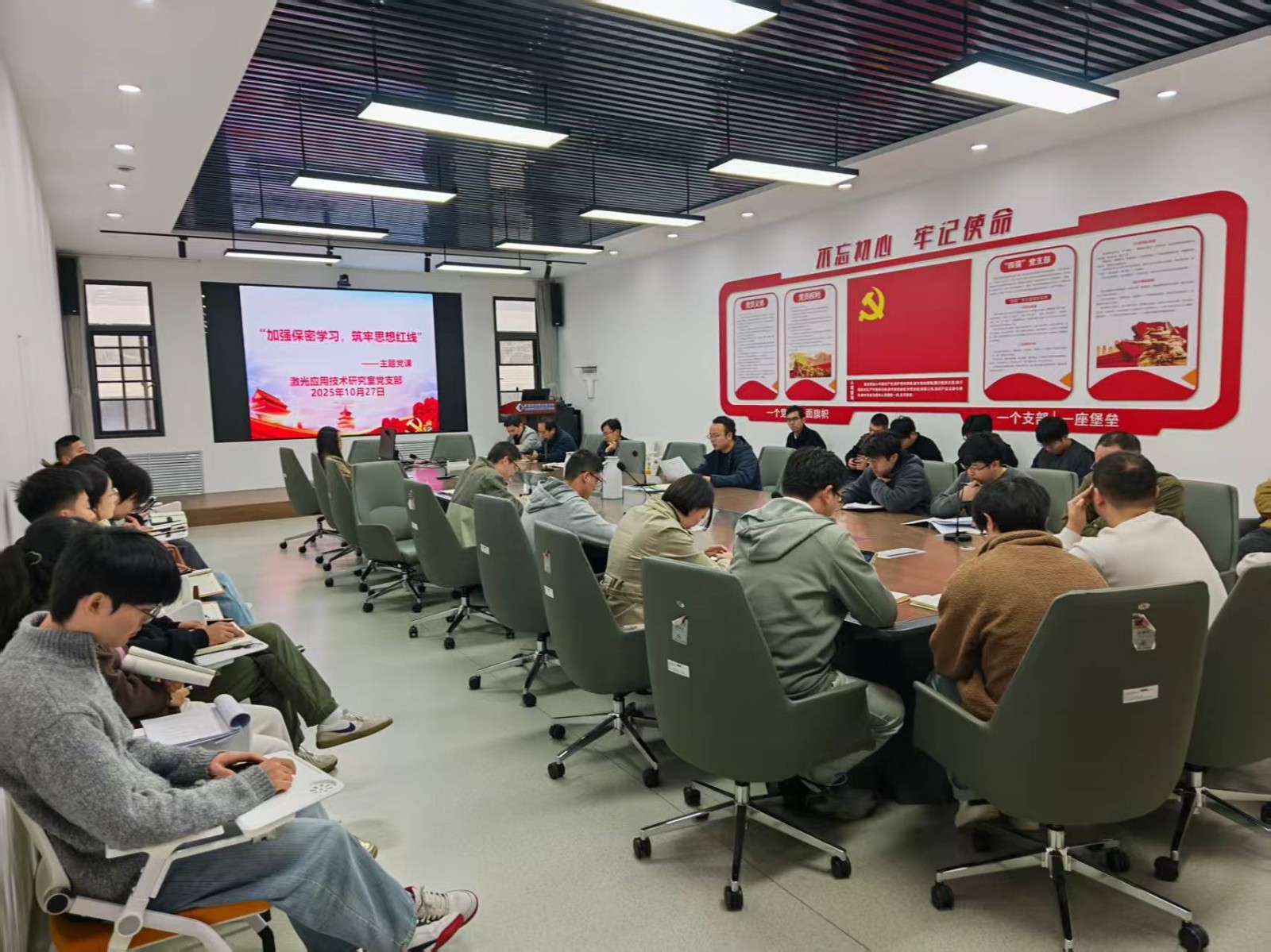 10月27日,激光应用技术研究室党支部召开“加强保密学习,筑牢思想红线”主题党课。会议党支部书记李朝辉主持,支部全体党员、入党积极分子和群众参加。