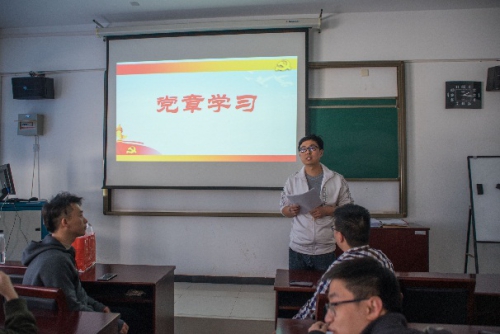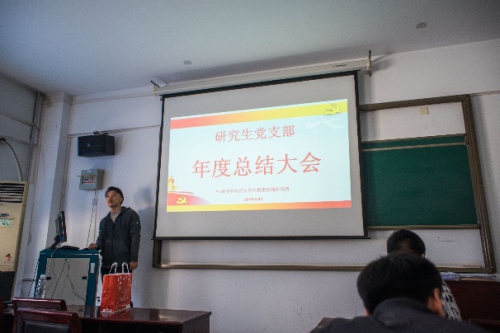 首先,博士研究生第一党支部书记郭俊江同志作支部年度总结。他以时间为主线详细介绍了这半年以来研究生各支部组织、参加的一系列活动,诸如:集体观看十九大开幕式,习仲勋墓园参观学习,研读《习近平的七年知青岁月》,十九大精神辅导报告会,观看红色电影(《无问西东》、《二十二》、《厉害了,我的国》)等,汇报了半年来的学习成果,总结出支部存在的不足,还对2018年拟开展的学习工作计划作了进一步说明。