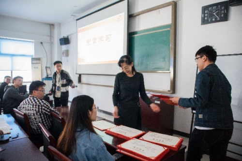 最后,党总支针对2017年下半年工作突出的优秀党员进行了表扬及奖励。研究生部老师、总支支委赵萍老师为优秀党员颁发了奖状和奖品。赵萍老师也建议党员能够珍惜时光,积极参与,互通有无,不断提升自身素质,学会如何平衡学业、工作以及做人。大会在热烈的掌声中圆满结束。 (研究生部 供稿)