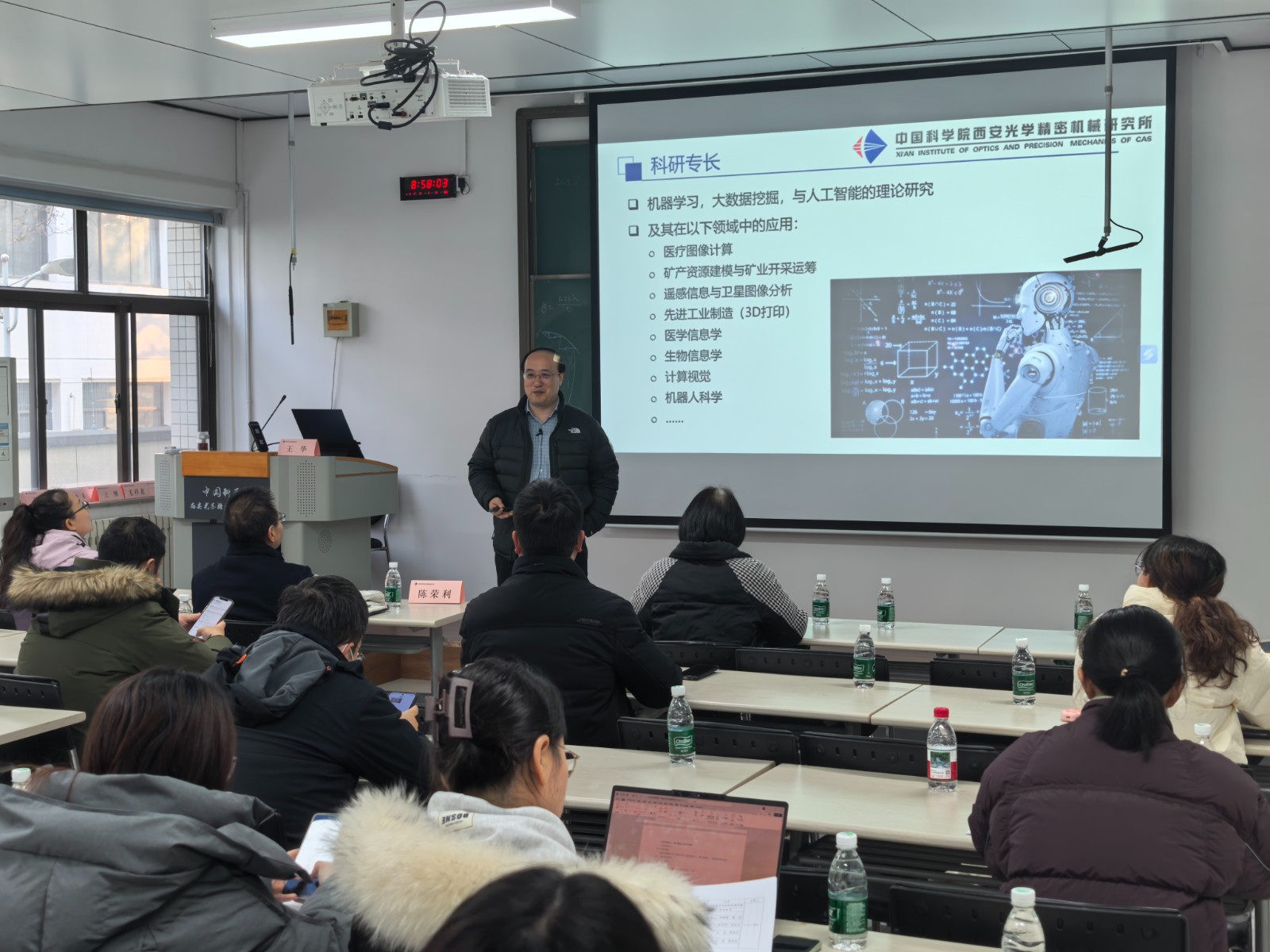 开班仪式由西安光机所人才人事处处长田新锋主持,科技管理部部长王博,空天技术部部长樊学武、副部长原晓斌,空间室主任王虎、王锋研究员及授课教师代表参加。