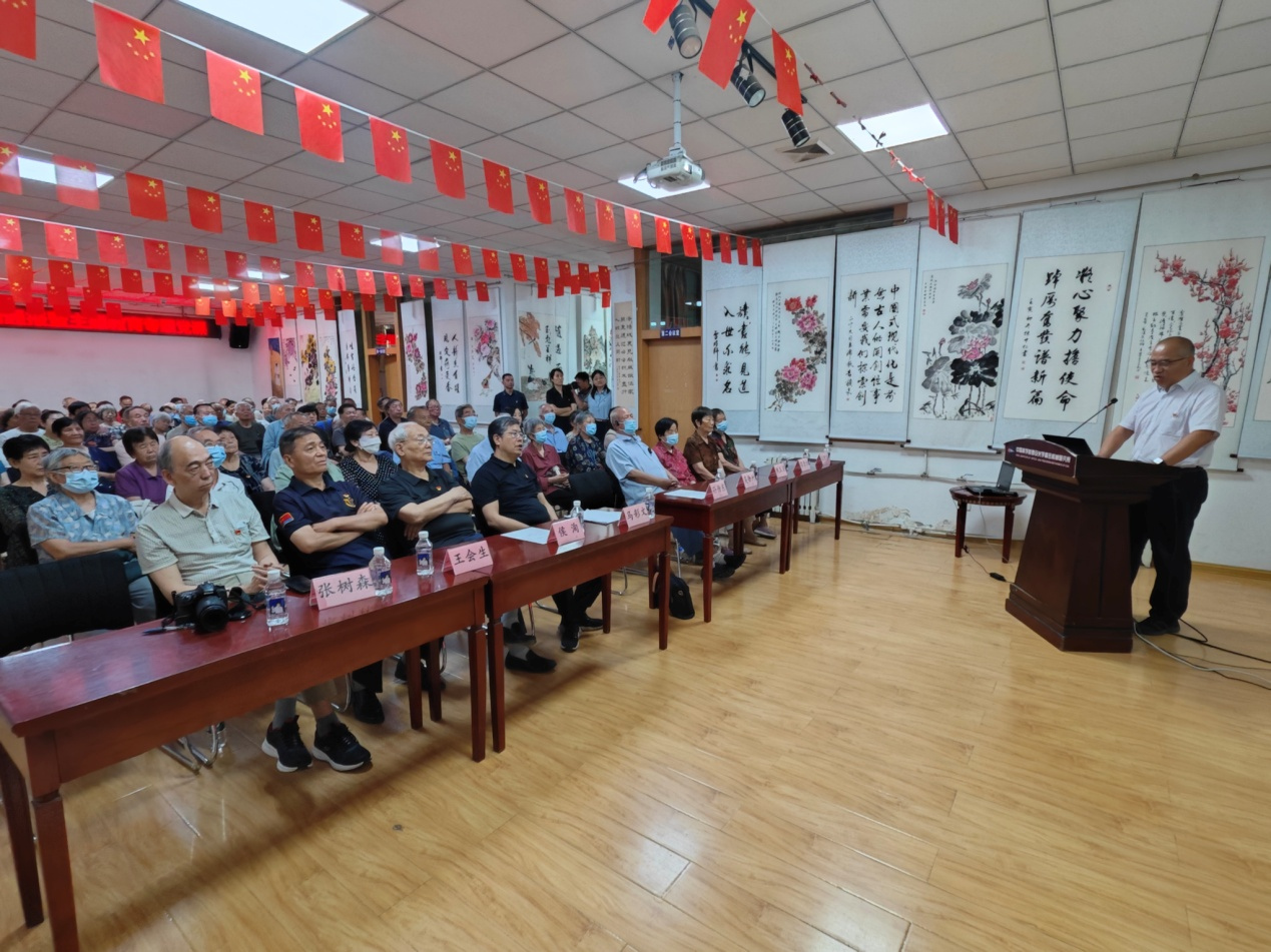 6月30日上午,所长马彩文,党委书记、副所长孙传东,专程来到友谊路园区离退休职工活动大厅,为离退休同志做近期研究所重点工作报告暨主题教育专题党课,离退办主任陈桂萍主持会议,离退休党(总)支书记、委员及离退休党员及职工代表100多人现场参加。