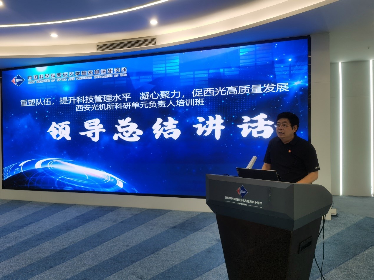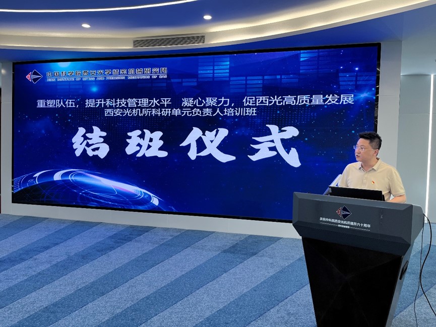 7月29日,以“重塑队伍,提升科技管理水平;凝心聚力,促西光高质量发展”为主题的科研单元负责人培训班圆满落幕。所长马彩文,党委书记、副所长孙传东,纪委书记梁峻出席结业仪式,人事教育处处长杨阳主持仪式。