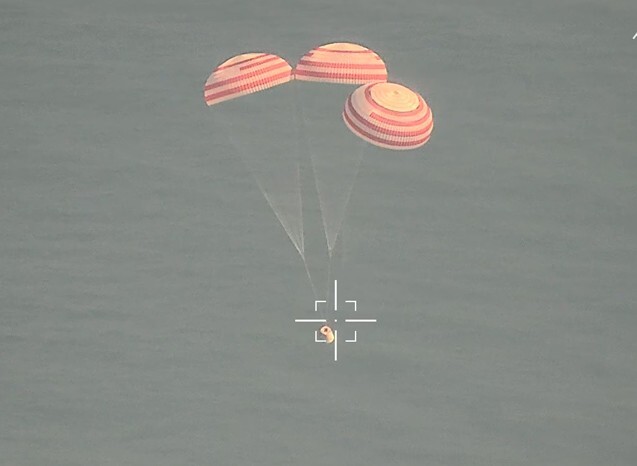 图 机载光学设备拍摄的返回舱即将溅海画面