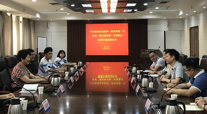 8月3日上午,西安光机所同西安高新一中举办的首届“明日科学家”科普联合培养计划正式启动。西安高新一中校长王淑芳、科创中心主任韩龚恩、机器人社团带队老师王增怀带领五名优秀学生代表走进西安光机所,同西安光机所副所长谢小平等进行热切交流。 2020-08-13