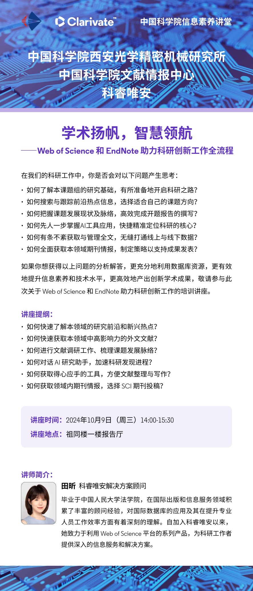 学术扬帆,智慧领航 -Web ofScience和 EndNote助力科研创新工作全流程