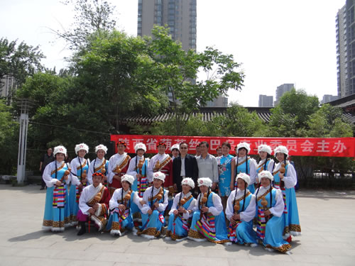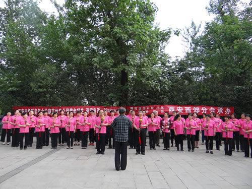 5月20日雨过天晴后的西郊丰庆公园,比往日多了许多热闹,因为这天由《陕西省葫芦丝巴乌专业委员会》主办、《西安西郊分会》承办的大型群众葫芦丝表演在这里举行。8时许只见七个分会的代表队队员们身着色彩艳丽的服装,精神饱满的陆续到场,他们个个认真,临场前还在练习作充分的准备,9时整演出的音乐响起,一下子吸引了在公园晨练的人们里三层外三层、人气十足。