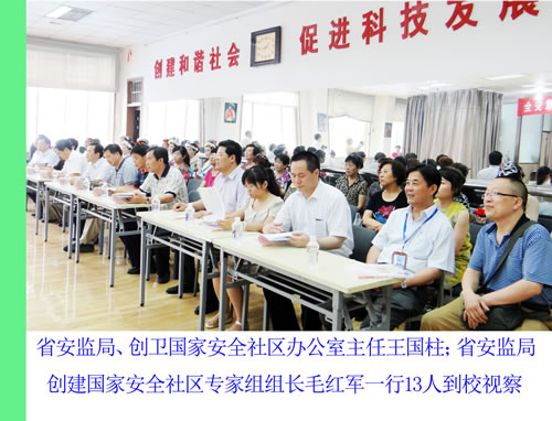 2015年3月19日上午,在碑林区张家村街道办事处一楼会议室举行2015年度张家村街道办事处安全工作会议。驻地企事业单位、学校相关领导参加了会议,会上主要对2014年创建安全社区工作做了回顾和总结,对2015年工作做了详细部署,我所老年大学在2014年6月5日街道安全社区创建工作中,陕西省安全生产监督管理局、省创建国家安全社区办公室主任王国柱,省安监局宣教中心负责人、省创建国家安全社区专家组组长毛红军以及西安市安监局、碑林区安监局、张家村街道办、驻地派出所、科研社区等省、市安监部门各级领导、阎良地区各街办社区领导等兄弟社区领导曾先后来我校视察调研,通过评审鉴定,受到省、市专家的一致好评,并于2014年10月正式通过验收被命名为“省级安全社区”被陕西省人民政府安委会确定为全省唯一创建安全社区示范点。这是对我所创建安全社区工作的充分肯定。也是对我们的极大鼓舞和鞭策。