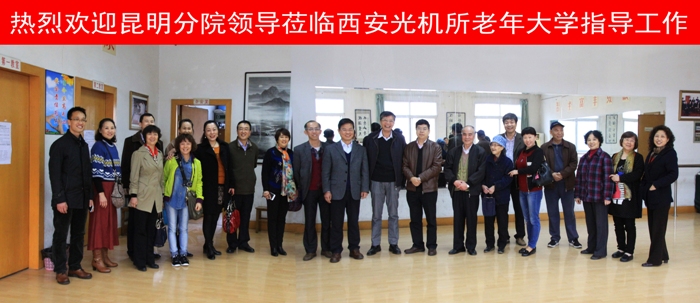 4月8日,中科院昆明分院副院长甘烦远一行五人,在西安分院副院长陈改学,分院党办主任白桦、副主任武海邢以及国家授时中心党办主任曹玉波等领导的陪同下来到西安光机所,调研老年大学工作。所党委书记马彩文、原副所长周金平、党办主任张岗峰、离退办主任李广路及所老年大学副校长郑敏、关志俊等领导出席接待。