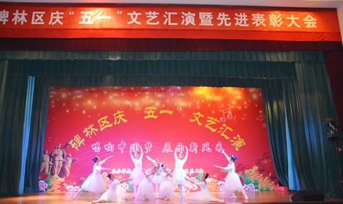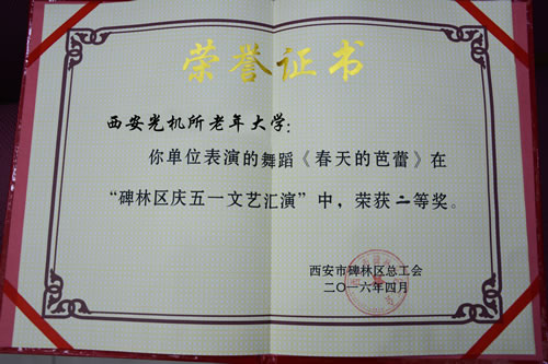 春光倾城、草长莺飞的明媚时节迎来了第126个五一国际劳动节,由西安市碑林区宣传部和总工会联合主办的以“唱响中国梦 展示新风采”为主题的庆“五一”文艺汇演暨表彰活动在区政府隆重举办。出席活动的有西安市总工会副主席魏大宝珠,区委副书记邢宏锋,碑林区委中心组全体成员、区政府处级以上领导干部,碑林区历届劳模代表和受表彰的先进集体和个人等,西安光机所老年大学和驻地单位职工等1000多人共同参与联欢。