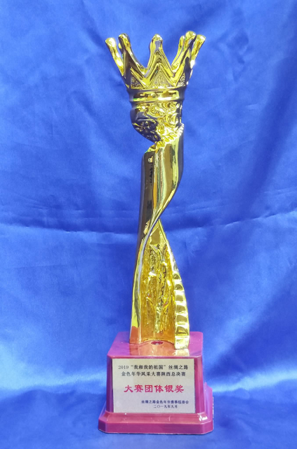 “我和我的祖国”2019丝绸之路“金色年华”风采大赛从7月份开始,经过近两个月的报名、海选,进入总决赛的有来自陕西省各地的中老年模特爱好者选手300余人、团体节目比赛32个。本次总决赛与以往不同,赛制全新升级,选手有惊喜满满的权益,比赛当天颁奖典礼隆重盛大,现场极其宏伟壮观。西安光机所老年大学模特队表演的《故乡雪》以独特的编排形式、24名模特的强大阵容、扎实稳健的基本功底,在LED精彩画面及优美音乐衬托下带给全场全新的模特视觉享受,在祖国70周年生日来临之际,老年大学学员们用自信诠释着对祖国的热爱和对生活的热爱,用行动和梦想魅力绽放,尽情挥洒T台,彰显了大西安国际化大都市的气质,展示了他们对美好生活的向往,展示了独特的魅力和神韵,表达了人们对祖国70华诞的深情祝福。我们队员的精彩演绎博得了专家评委和观众的满堂喝彩和不绝掌声,最终以优异成绩获得本次决赛“银奖”。