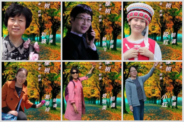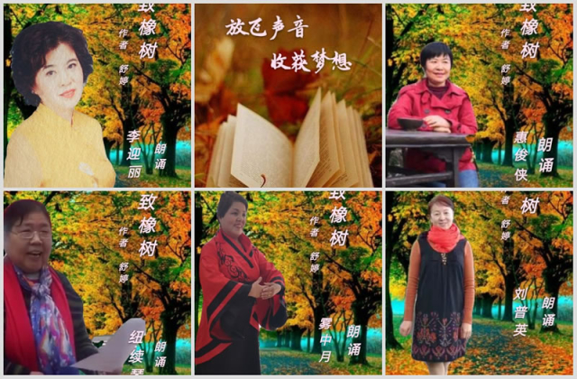 3月底4月初,每周四晚上七时整,老年大学朗诵班学员在班级微信群中集体举办线上同题作品朗诵会,共同朗诵舒婷的诗歌《致樟树》。朗诵会由骨干学员宋小平线上主持,朗诵按照提前排练好的顺序进行,主持人介绍演出人员后,线上向演员献花,演员再发送个人照片亮相登场,接着开始朗诵。每一位演员声情并茂,专情朗诵,用自己独特的表达,向最美逆行者致敬,他们还制作了V篇献给大家,展现对祖国的祝福,对生活的热爱,用感恩的情怀表达心中美好的祝愿,用动情的声音和旋律传递人间大爱!
