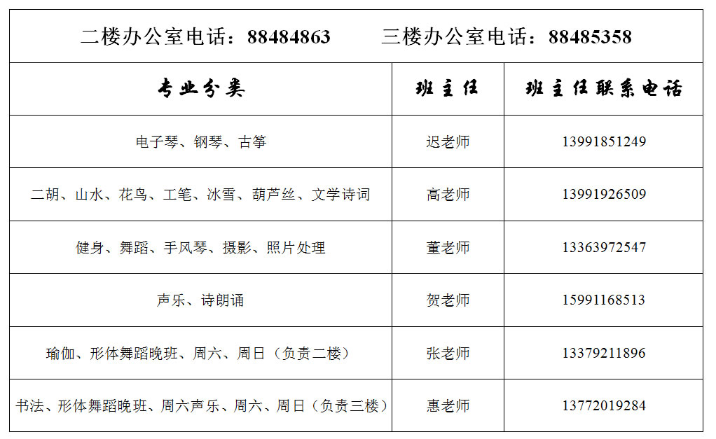 (6)我校是老同志比较集中的地方,容易出现一些突发状况。经学校研究决定:自2018年春季,学员在“报名表”时填写一位监护人联系电话,以便发生意外及时联系到家人,望各位学员理解。