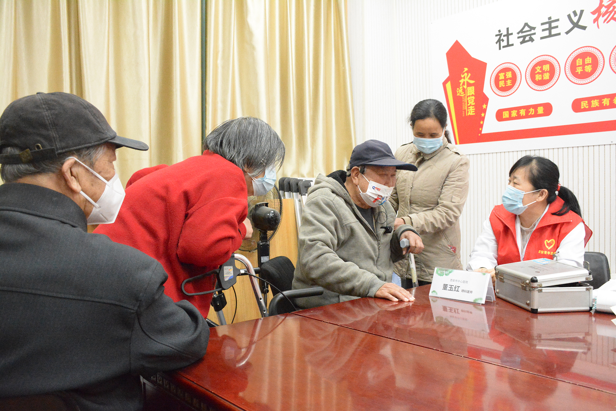 随后,西安市中心医院医护人员认真地为在场老人进行视力测试及眼底疾病检查,并详细询问老人眼部状况及日常生活习惯,耐心地分析病情,讲解护眼知识。