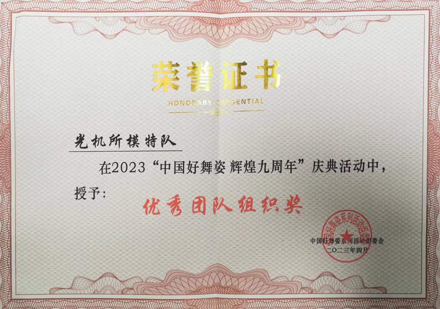 西安光机所老年大学获“中国好舞姿辉煌九周年”活动优秀组织奖