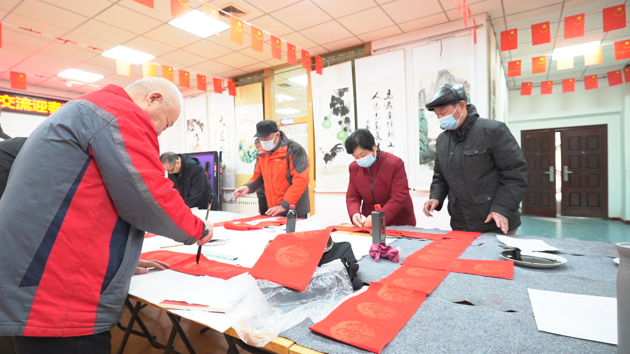书法班学员:现场“挥毫泼墨展风采、书写对联迎新春”