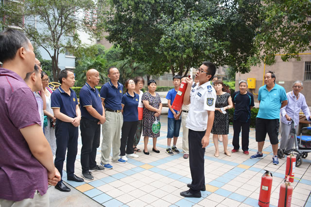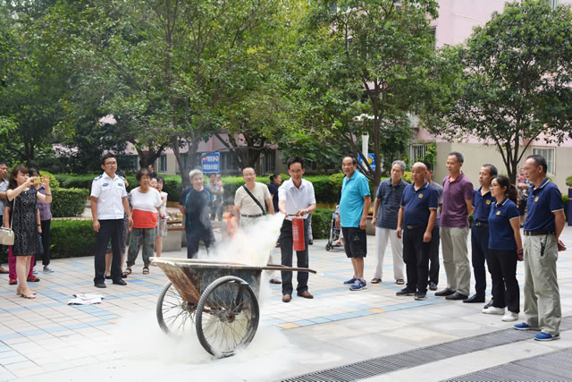 董湃首先通过西安市近两年的典型火灾案例,讲述了火灾的严重危害,引起大家对火灾的高度重视。重点讲解了日常生活和工作中各种火灾发生的原因,尤其是发生率极高的电火灾,原因包括电线电器老化、过负荷使用、安装和设置不合理、电器故障、违规操作、不良用电习惯等六种。接着视频讲述了火灾由小到大发展的快速性和火灾发生时浓烟传播的极高速度。火灾浓烟的特性:一是温度高(450度以上),二是毒性强(含一氧化碳、二氧化硫等),三是速度快(每秒3-5米),这些特性导致的危害性是极其严重的,后果是惨痛深刻的。着重讲解了火灾自救和逃生技能,厨房油锅着火的灭火方法和技巧,必备防火设备及使用方法。讲座结束后,在临近的家属院广场上,董湃细致介绍了灭火器的使用方法,并亲自规范操作指导,大家轮流上场,亲身体验使用灭火器,现场进行灭火演练。