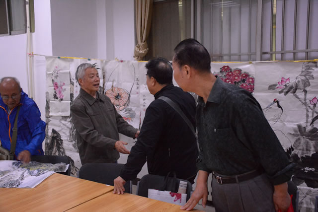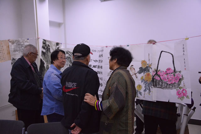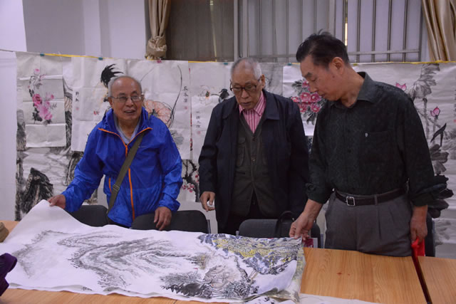 活动动开始前,大家一起观瞻了离退休活动大厅和活动外厅内悬挂的几十幅精品力作,逐一观览,相互鉴赏,大家还不时的提出自己的品鉴意见,互相请教切磋,认真交流心得,畅谈创作体会。随即,与会人员纷纷拿出自己近期精心创作的书法作品,他们用饱蘸深情的笔墨描绘祖国的大好河山,书写家乡的建设成就,以精美的书画作品,向新中国69周年华诞献上一份厚礼。数十幅精心创造好的书画作品,无论是书法、还是山水、花鸟、人物画;无论是写意,还是工笔;无论是临摹,还是创作,都尽显了与会的书画爱好者深厚的绘画、书法功力,这些书画作品色彩缤纷、活力四射,内容契合新时代发展主旋律,充分展示了老同志们对祖国的无比热爱和美好祝福。