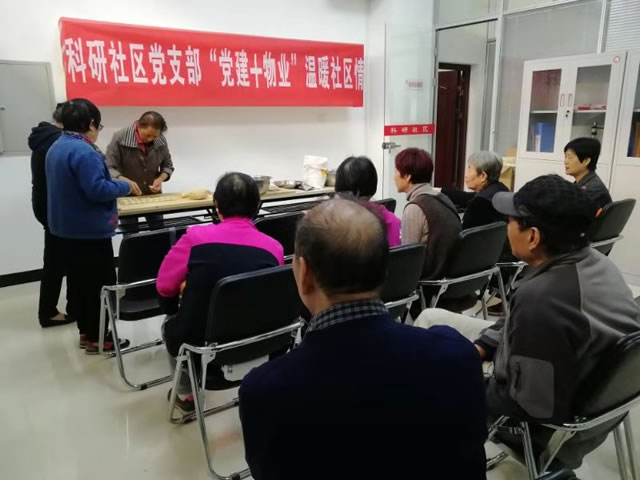 科研社区表示将一如既往对本协会给予大力支持和帮助。今年科研社区党支部面对新形势下的管理工作,积极开展了“党建+物业”的工作新模式,社区和物业作为社会基层治理中最关键的一环,如何理顺这一关系,对提高社会治理水平,建设和谐文明社会有着重要的意义。科研社区在推进这一工作的实践中,不断进行探索和尝试,为了把这一创新模式落到实处,让广大社区群众真切地感受到党和政府对人民群众的关怀和关爱,党支部提出“党建+物业”温暖社区情,要把贴心服务带进社区,把关爱工程带进社区,而我所老年厨艺协会正是这一创新工作模式的受益者,在得知所厨艺协会没有合适的活动场所后,社区不仅将其已建好的烘焙间无偿提供我所使用,而且还给予了十分细致和热情周到的服务,而与此同时我所老年厨艺协会则通过各项活动的开展,进一步丰富了社区的文化生活,营造了社区群众积极向上追求美好生活的浓厚文化氛围,可以说在所地合作方面开创了一个和谐互动和双赢的良好局面。