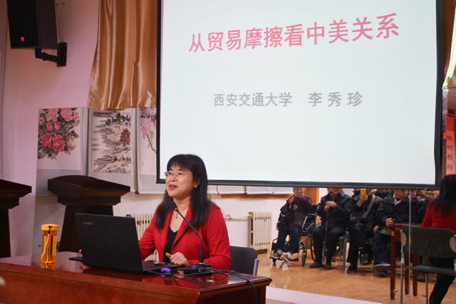 为了让全所离退休党员职工及时了解、正确认识当前国内外热点新闻时事,11月21日上午,所离退休党总支特邀西安交通大学国际问题研究中心主任、马克思主义学院教授李秀珍,在友谊路园区离退休活动中心一楼大厅做了《从中美贸易摩擦看中美关系》专题辅导报告。离退休六个支部的支部书记、委员及离退休党员等约110人参加了集体学习,离退休党总支书记李广路主持报告会。