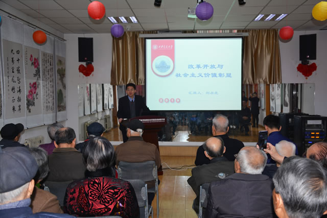 为促进我所离退休职工深入领会改革开放的时代精神,2019年2月28日上午,离退休党总支特别邀请西安交通大学马克思主义学院副教授、博士生导师刘占虎老师,在友谊路园区离退休职工活动大厅作了题为《改革开放与社会主义价值彰显》的专题辅导报告。离退休党总支全体委员、离退休6个党支部的支部书记及委员、离退办全体工作人员、离退休党员职工等120余人参加了专题学习。离退休党总支书记、离退办主任李广路同志主持会议。