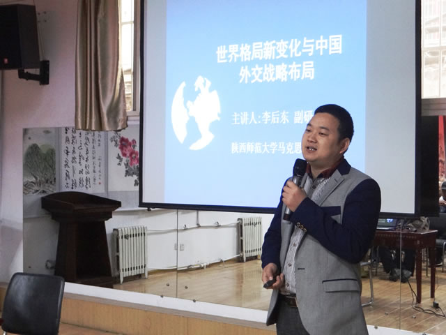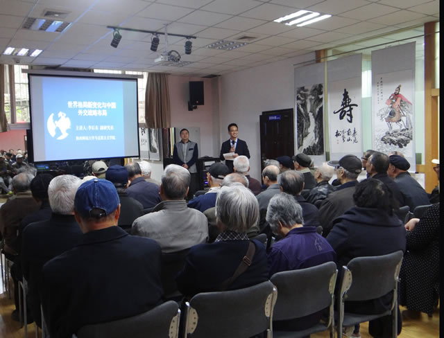 为了让老同志们深入了解当前国际形势和世界发展大局,宏观认识我国外交战略布局,4月10日上午,西安光机所离退休党总支特邀陕西师范大学马克思主义学院硕士生导师李后东副教授,在友谊路园区离退办一楼大厅做题为《世界格局新变化和中国外交战略布局》的专题辅导报告。离退休党总支书记、离退办主任李广路主持会议,离退休党总支全体委员,离退休6个党支部的支部书记及委员,离退办全体工作人员、离退休党员职工等130多人参加了专题学习。
