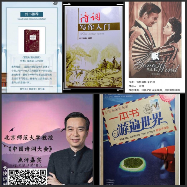 书友们推荐的书目主题宽泛,既有经典著作类《白鹿原》、《飘》、《左传》、《论语》、《平凡的世界》,也有语言文字类《亲爱的祖国》、《随想录》、《悠闲生活絮语》,既有励志类《摆渡人》、《你当像鸟飞往你的山》,又有文化类《唐诗三百首》、《宋词》、《诗词写作入门》等等。推荐理由简明扼要、主旨鲜明,让参与者有收获、有思考、有启发,极大地激发了研究所离退休广大书友读书的热情。