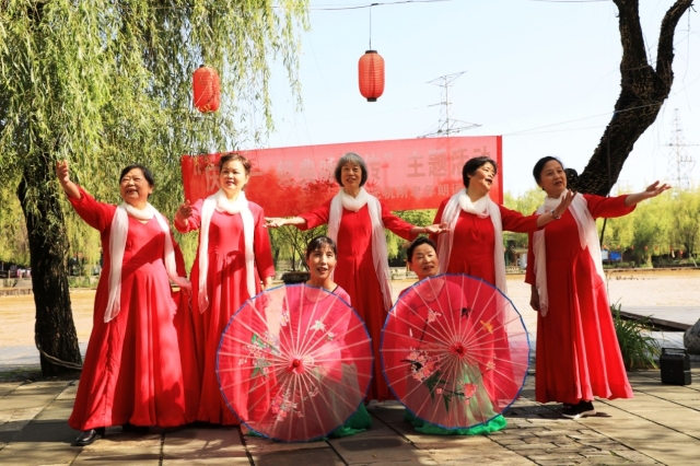 上午九时,朗诵会首先在歌伴舞《风中有朵雨做的云》和诗歌吟诵表演《送友人》中拉开帷幕。接着,演员们以积极饱满的精神姿态、深情婉转的优美唱腔依次表演毛泽东诗词《浪淘沙》《为女民兵题照》《七律·长征》,其意境高远,寓意深刻,饱含深情。透过主题朗诵,现场的观众们仿佛看见了中国革命和建设艰辛历程中党和军队与人民心连心、手拉手接力前行的壮丽画面。最后,全体演员以一曲秦腔唱古诗《题都成南庄》和一个集体舞蹈《想家的时候》把朗诵活动推向了高潮,精彩的诗歌朗诵和深情表演赢得了过往游客的阵阵掌声。主题活动既弘扬了中华优秀传统文化,诠释了人民子弟兵诚挚高尚的家国情怀,也表达了对即将到来的中国人民解放军的建军节祝福。