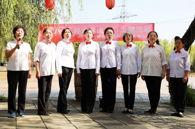 7月26日,在中国人民解放军第93个建军节即将到来之际,由西安光机所离退休党总支主办,老年朗诵协会承办的迎接建军节“庆八一·经典咏流传”主题朗诵活动,在生态文明小镇周至水街举办。离退休党总支副书记高薛燕,离退休第二党支部书记王拥祠、五支部组织委员何玉兰,老年朗诵协会会长孙阿娣、副会长王芳,阳光健身协会会长杨巧枝、副会长黄中敏与老年舞蹈协会、阳光健身协会、老年朗诵协会会员等50多名党员职工参加活动。