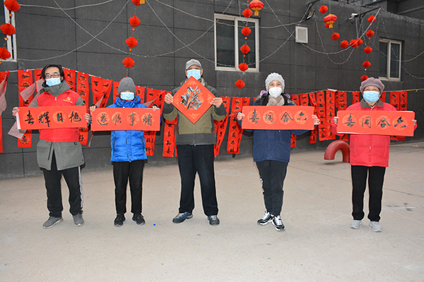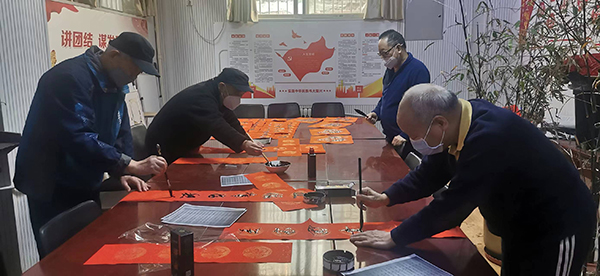 “虎振雄风留浩气,兔迎盛世启新程”“阖家欢乐纳千祥,和顺门第增百福”“一帆风顺年年好,万事如意步步高”----------,书法爱好者们提前写好的对联悬挂起来,墨香味浓浓。200副春联和200张“福”字均包含着相同的美好祝福 。 一副副春联佳作满载着新春的祝福,凝聚美好的憧憬, 让大家感受到了浓浓的“年”味。