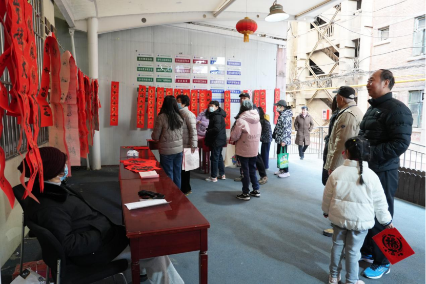 活动现场挂满了书法老师们提前挥毫泼墨书写的200余副饱含美好寓意的春联。那一笔一划间流淌出吉祥喜庆韵味,浓浓的年味弥漫在现场每一个角落。书法老师和还现场精心书写蕴含美好祝愿的“福”送给前来参加活动的园区居民们,让大家提前沉浸在新春的欢乐之中。