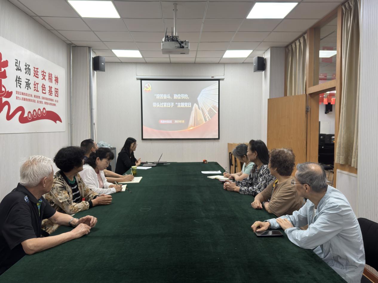 为深入贯彻落实党中央关于过紧日子的决策部署,引导离退休党员干部发挥先锋模范作用,5月27日,离退休党总支组织召开“艰苦奋斗、勤俭节约,带头过紧日子”主题党日活动,通过学习讨论、实践倡议等形式,让节约理念在老党员群体中入脑入心。