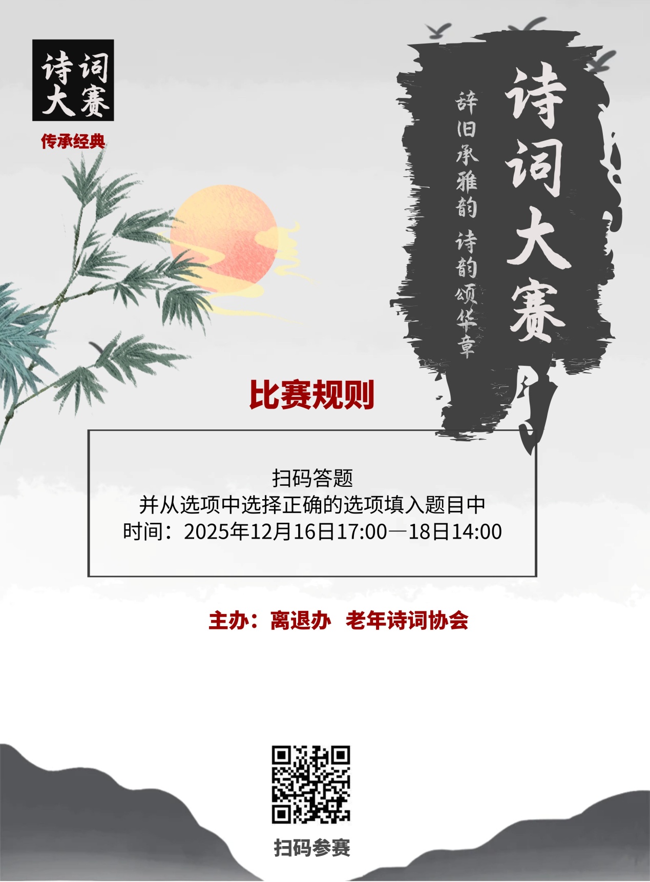 西安光机所离退休职工诗词网络大赛圆满落幕辞旧迎新之际,墨韵诗香满屏。一场以“辞旧乘雅韵,诗韵颂华章”为主题的离退休职工诗词网络大赛圆满收官。本次大赛共吸引了380名诗词爱好者踊跃参与。此次大...2025-12-30