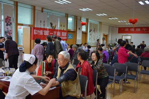 活动原定于上午8:30开始,但8:00就有好多老同志排队候诊,工作人员也提前到场,开始进行各项义诊准备。眼科专家运用裂隙灯显微镜进行眼睛各部位的检查,包括眼睑、结膜、巩膜、角膜、前房、虹膜、瞳孔、晶状体、前玻璃体等,以确定病变的位置、性质、大小及深度,眼科专家根据检查结果及个人有关情况给出合理的治疗建议和防护措施。内分泌科专家根据现场检测的血糖结果,并结合老同志以前的血糖情况,做出综合分析,做出客观的评价,最后给予合理方案和建议。心内科带来了最新检测设备,对高血压容量负荷进行检测,为大家提供健康警示。心内科专家李月英主任耐心接诊每一位老同志,细致询问身体状况和以前检查,综合评判后给出详细的诊疗方案。