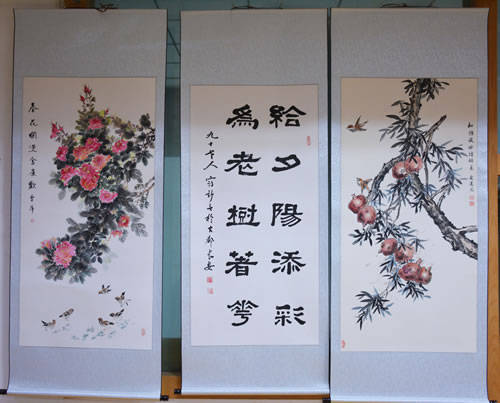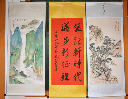 展出的书画作品共计60多幅,风格多样,内容丰富。作品既有以书法为载体,用楷书、行书、草书、隶书、篆书书写的诸如“讴歌新时代 迈步新时代 ”“ 学习十九大 铸就新时代 ”等讴歌新时代的关键语句,也有借景抒情,用韵味深远的笔墨赞美祖国壮丽山河的气势恢宏的山水画、动态如生的花鸟画,还有书法与绘画相合作,用独到的技艺挥毫泼墨,妙绘丹青创作出的庆祝传统佳节的精品佳作。一幅幅精美的作品或优美宛转,或挺拔刚劲,无不包含作者颇具内功的艺术情怀,观展者无不沉浸在诗情画意中,畅想在祖国繁荣富强的伟大梦想中。