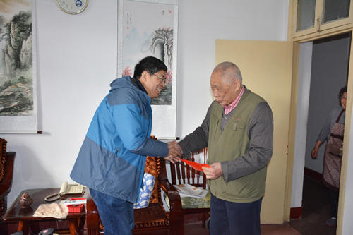 2月11日上午,在2018农历新春佳节即将来临之际,所长赵卫,党委书记、副所长、纪委书记马彩文,副所长、所工会主席高立民,副所长谢小平等党政领导,在所党委委员、综合处处长张岗峰,所工会、所党办、离退办等有关部门人员陪同下,对研究所离休老干部、老专家、困难党员、困难职工、高龄、大病重病以及失独等特殊职工等共68人进行了集中走访慰问,向离退休老同志们送去了节日的问候和新春的祝福。