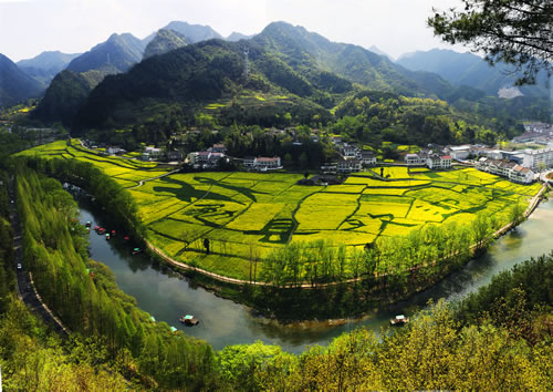 在陕西勉县,今年灿烂如金的油菜花海又现人间,15万亩油菜花在山野梯田间恣意生长,与白墙黛瓦的村舍相映成趣,在龙湾的花田中,黄绿相间的五个大字“勉县欢迎您”夺人眼球,一望无垠的油菜花田正在成为勉县富民强县的“软黄金”。经营农家乐的农户,每到油菜花盛开的季节就是他们一年最忙碌的时刻。“去年三四月份,这儿的停车场都满了,你看,这怎么都得有百十辆来车吧。”黄家沟村共200多户,其中约有一半的人参与到了农家乐的经营中,去年全村农民人均纯收入达21800元,发展休闲观光农业已经成为黄家沟村致富的主导产业。勉县县委书记马大勇说,勉县以花为媒,发展乡村旅游,推动县域经济发展,去年接待旅游人数680万人次,旅游收入达32亿元。油菜花带来的经济效应不仅仅局限于花开的时节,也不仅仅受制于这座秦岭深处的小小县城。一位76岁的老婆婆向我们诉说着一辈子头一回遇上了这么好的年景,特别感恩人民领袖习近平。