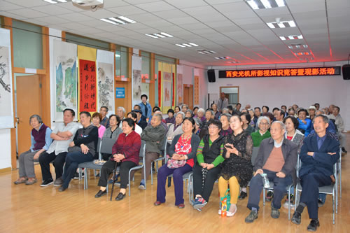 5月8日,由我所离退休党总支和老年观影协会联合主办的以“凝聚爱国情 共筑中国梦”为主题的爱国主义教育观影活动,在友谊路园区离退休职工活动大厅和外厅同步举行。所内离退休党员、职工及家属200余人共同观看了经典影片——《烈火金刚(下集)》。离退休党总支书记、离退办主任李广路,所老年观影协会会长、离退休第四党支部书记解兴惠共同主持活动。