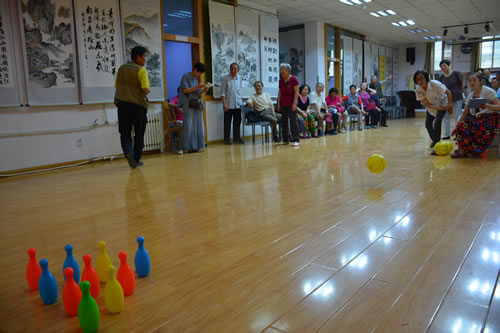 随后进入各项赛事的精彩角逐,本届运动会项目较之往年有所创新,赛事设计既考虑竞技性,又考虑趣味性,增强了老同志们的视觉新鲜感。在接下来两天的时间里,联赛个人项目夹弹珠、跳乒乓球、投掷飞镖、趣味保龄球、平地投沙包和集体项目筷子运球等联袂呈现。300余名离退休职工、613人次老同志热情高涨,分项展开了角逐,每个比赛项目都排起长长的队伍。单人赛项目你追我赶,各显其能,选手的良好表现不时赢得阵阵欢呼,或巧或拙的身形不时引来阵阵笑声,比赛精彩纷呈,高潮迭起,充满了活力和趣味。团体赛项目筷子运球,要求每队四名队员在4米长距离中按规定时间用筷子传递乒乓球,比拼的是团队凝聚力和战斗力,在紧张刺激的氛围中,队员们互相鼓励、协同合作。不管是良好协作运球顺利,还是中途掉球急忙重来,在比赛时间段里,观众的心情和选手一样地紧张集中,也分享到了比赛后取得好成绩的愉悦心情。经过两天6个项目的激烈角逐,产生了一等奖9名、二等奖17名、三等奖24名。