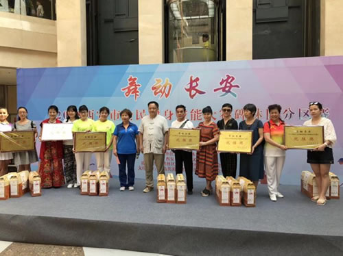 来自碑林区8个街办选送的24个代表队近千名社区群众参加了比赛。比赛设置健身操、武术、太极综合四大类团体项目。项目中有传统国粹太极拳、太极剑,还有韵味十足的健身操舞,更有古典唯美的传统舞蹈。西安光机所老年大学舞蹈队代表张家村街办表演的具有陕西特色的秧歌舞蹈《秦风秦韵》以其生动活泼的表演形式,自由俏丽的舞姿给大家呈现了唯美的视觉盛宴,赢得了现场观众阵阵掌声和评委一致好评,最后获得第一名“优胜奖”荣誉称号。