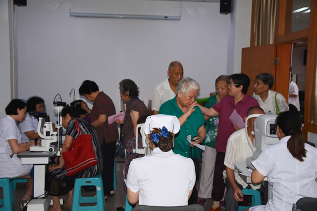 交通医院医生8:20-9:00为大家测量血糖,9:00-10:00健康讲座,讲座结束后,老同志们根据本人身体情况,自觉排队来到不同科室的专家处进行疾病诊治和健康咨询。内科、中医科、妇科、儿科、眼科各科专家仔细巡诊,细致检查,耐心为每位咨询者细心讲解病因病理、治疗方法、防护措施。为老同志们解除了心中的疑问,让他们感到非常满意。