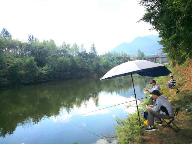 早晨7:00从友谊路园区准时出发,8:30左右到达目的地,虽然路途较远,但环境非常优美,近处满地的庄稼、树木、花草绿油油连成一片,放眼远处的蓝天白云和翠华山的碧绿壮观美景,给人一种舒适惬意的享受。怀着美好的心情,大家各自选择合适的钓位,快速整理好钓具,不一会儿就摆好了阵势,正式进入垂钓状态。