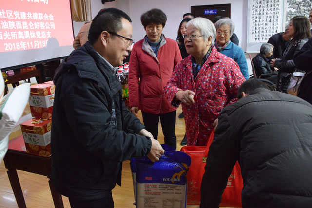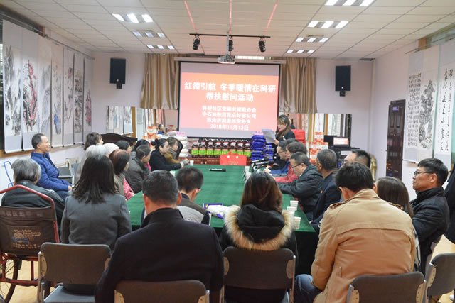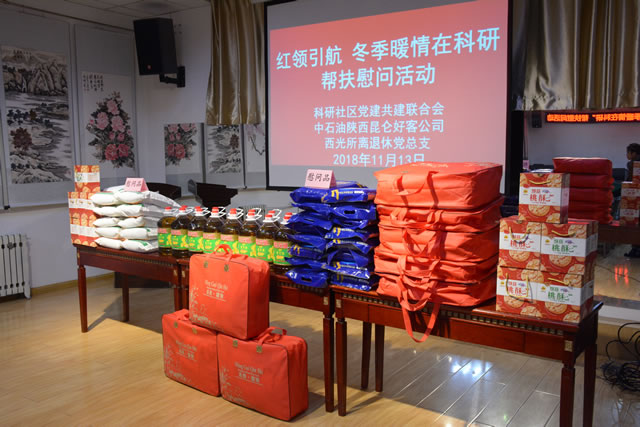 11月13日,为贯彻落实党的十九大精神,深入做好联系居民、服务困难职工群众,协助困难人群脱贫解困,西安机所离退休党总支联合张家村街道党工委科研社区党支部、中石油陕西昆仑好客销售分公司党委,在研究所友谊路园区开展了“红领引航 冬季暖情在科研”慰问活动。张家村街道党工委科研社区主任、党支部书记曾敏,中石油陕西昆仑好客销售分公司党委书记霍小莉,所离退办主任、离退休党总支书记李广路,以及辖区部分职工群众参加活动,科研社区党支部副书记方蕊主持会议。