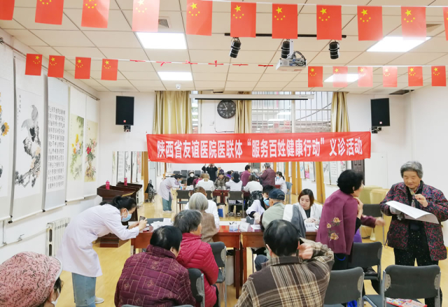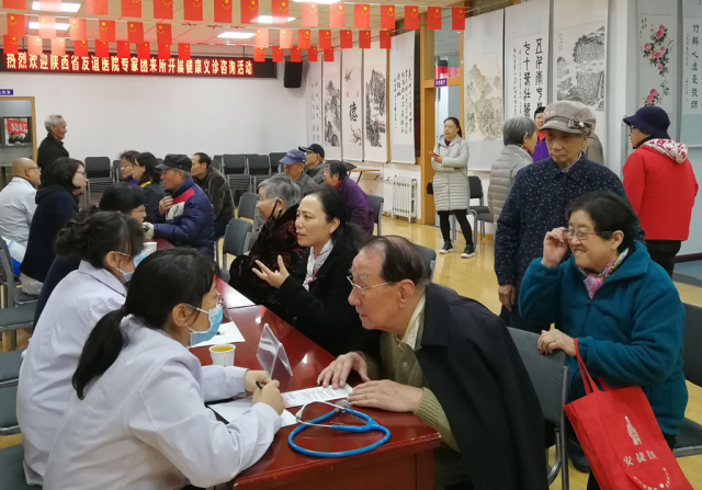 秋冬交替,天气逐渐转冷,多种疾病高发。为提高离退休职工的预防保健意识,方便老同志及家属、老年大学学员就近诊治疾病和健康咨询,11月8日上午,西安光机所离退办特邀陕西省友谊医院专家团来所开展健康义诊和健康咨询活动,友谊医院派出包括呼吸内科、消化内科、神经内科、骨科、大外科、中医科、肿瘤科七大科室的六名主任医师、副主任医师和4名主治医师、检验师、护士组成的专家团,在我所友谊路园区离退休职工活动中心为大家作大型健康义诊和咨询活动,360余人次离退休职工和家属、大学学员来到现场进行健康诊疗或咨询。