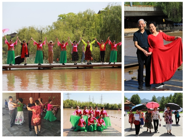是日,雨后天晴,阳光和煦,气温适宜。大家一路欢声笑语,来到水街,近观远眺,地阔天蓝,小桥流水,绿树成荫,飞鸟起落,画在景中落,人在画中游,她们即兴翩跹起舞,驻足拍照留念,捕捉美好瞬间,心情格外舒畅。桥上留下了她们爽朗自信的欢笑,水中倒映了她们欢乐清澈的舞姿,河边留下了她们团结和谐的合影。