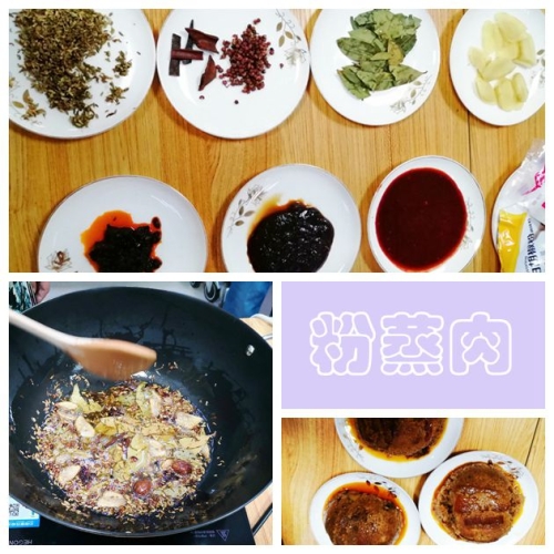 粉蒸肉作为中国美食的一道经典菜品,其久负盛名并深受欢迎就在于它把中国饮食文化的精髓通过烹饪的技法精彩而完美地展现给人们,五花肉和大米的巧妙结合再经几种调料和酱料的入味,最后经高温蒸制使菜品得以质的升华,看似普通的食材也没有过多修饰的一道菜品却能给食客带来肉酥味浓,米粉香糯,油而不腻,百吃不厌的感觉,成为男女老幼都能接受和喜爱的一道美食。而这道家喻户晓的美味佳肴究竟该如何烹制,特别是怎样在家庭也能做出饭店粉蒸肉的味道,专业大厨给出的秘诀就是重点要围绕怎样让肉品入味做好文章,而这其中的关键就是一定要炒制好香味浓郁的粉蒸肉酱料,许多人蒸制的粉蒸肉寡淡无味主要原因就是这一步骤的操作不到位。为了原汁原味地借鉴和吸收专业大厨制作粉蒸肉的方法和经验,参加厨艺实践活动的三位会员在反复观看大厨制作粉蒸肉教学视频的基础上,打响了制作粉蒸肉的攻坚战,由于制作粉蒸肉辅料的数量较少无法分别使用,因而采取了两步走的方法,粉蒸肉酱料集中炒制,其余的烹饪工序各自在家中完成。18日下午,三位会员首先启动酱料炒制程序,六种调料和四种酱料在热油的激发下香气瞬间弥漫在空气中,尽管操作室关着门,但挡不住闻香而来的许多老同志,纷纷询问什么东西这么香,在得知仅是酱料的香味后一些老同志说这样做的粉蒸肉一定会很好吃。随后三位会员按照专业的烹饪方法各自在家中先后对主材大肉进行清洗、烫皮、切片,以及进行调料拌制、分装上碗和大火蒸制等步骤,为了保证第二天按期交付厨艺成果,三位会员有的顾不上给家人做晚饭,有的一直蒸制到凌晨2点,虽然十分辛劳,但当一碗碗色泽红亮满屋飘香的粉蒸肉呈现在他们眼前时,所有的疲劳感瞬间被成功者的喜悦所代替。
