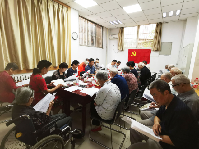 随后,按照组织生活会既定的议程:一是重温了入党誓词,党员全体起立,握拳举起右手,支部书记王拥祠领读共产党员入党誓词,大家跟读。党员声音洪亮,句句铿锵有力,仿佛又重回入党时刻,充满对党的热爱和作为党员的自豪,激发起党员的责任感和使命感。二是进行了大会集体学习,王拥祠与组织委员高薛燕、宣传兼纪检委员吴宝兰分别带领党员集体学习了《习近平在“不忘初心、牢记使命”主题教育总结大会上的讲话》和《习近平治国理政》第三卷第二章坚持和加强党的全面领导、第四章坚持以人民为中心有关章节中的重要内容。三是由王拥祠做上半年支部工作汇报,他首先向大家汇报了支部在政治、思想、作风、学习、宣传、为抗疫捐款、党费收缴等方面的工作,接着就支部组织参与离退办抗疫、各类线上线下活动、慰问老同志等工作一一汇报。四是党员同志围绕会议主题做自我剖析,支委按照事先准备的书面提纲带头剖析发言,党员同志们随后也开展了剖析,进行了批评与自我批评,提出了不少建设性的意见和建议。大家围绕会议主题,就全党当前“决胜脱贫攻坚战,全面实现小康社会”重大任务,动员全体支部党员坚定打赢脱贫攻坚战的信心。大家还谈到,目前在党的领导下全国广大人民群众共同努力,抗疫工作取得重大成效,比较世界发达国家抗疫形势,深感中国共产党的伟大!还就国际形势、反对餐饮浪费、垃圾分类等进行交流,替党分忧,为国解难,一致认为作为一名老党员应该加强学习,为国出力,做一名合格的共产党员。管好自己也管好家人,树立良好家风,为社会和谐稳定尽一名党员的责任。五是与会党员进行了交流思想,对支部工作提出意见和建议。大家开诚布公地互提意见、指出不足,开展批评与自我批评,对支部工作提出合理意见和建议。六是以自评与互评相结合的方式对党员进行了民主评议。