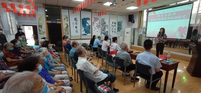 8月27日上午9点,西安光机所首届“公益服务周”启动仪式在研究所友谊路园区职工活动中心隆重举行。活动特邀西安市红十字会急救队何依宸大夫及其志愿者团队,西安未央创和社会工作服务中心罗鹏军主任,北京市盈科(西安)律师事务所黄文娟律师,西安广播电视台记者,西安光机所老领导、老专家、老同志,老年自愿者等100余人参加了启动仪式。