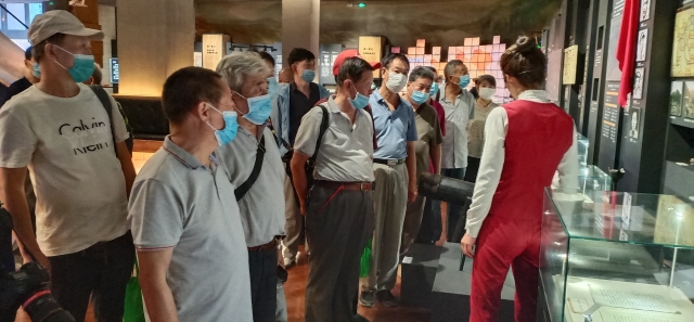 健康扫码和测温后,大家依次步入纪念馆。首先映入眼帘的是岩板石片铺就的地面与气势恢宏的铸铜雕塑,中央跳动的火苗象征着薪火传承,置身其中,立即有一种肃穆庄严的氛围。走进展厅,讲解员以陕甘边革命根据地历史为主线,娓娓述说根据地从初创到巩固、发展的光辉历程,尤其是一件件珍贵的革命历史实物和史料、文件,仿佛将参观者带入历史的现场,真实而感动。一边聆听着讲解,一边亲手触摸沧桑的物品,每一个展柜、每一段视频、每一件物品的背后,都是一个个真实的故事、一份份真挚的情感。